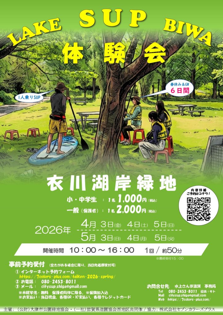 春の訪れとともに、びわ湖の湖岸緑地でSUP体験しませんか?