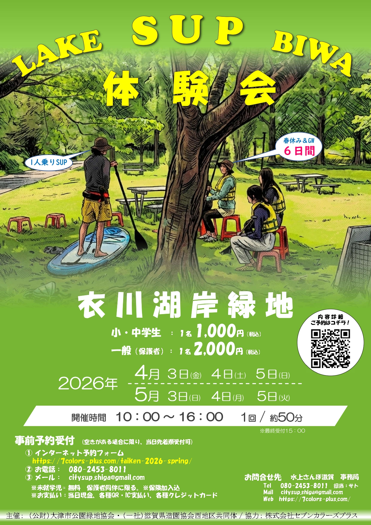 春の訪れとともに、びわ湖の湖岸緑地でSUP体験しませんか?